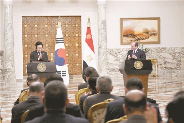 During a joint press conference with South Korea’s president, Egyptian President Abdel Fattah El-Sisi described the bilateral relationship between Egypt and South Korea as a successful example of economic collaboration. He emphasized the mutual benefits derived from ongoing cooperation and highlighted the importance of deepening ties in trade, investment, and technology transfer. n nEl-Sisi noted that the two nations share a commitment to expanding their economic partnership, particularly through initiatives like the proposed Comprehensive Economic Partnership Agreement (CEPA). He expressed optimism about future projects that could enhance industrial development and innovation in both countries. n nThe Egyptian leader reaffirmed Egypt’s role as a strategic partner in the region, capable of facilitating broader economic integration with Asian markets. He welcomed increased South Korean participation in infrastructure and technological ventures within Egypt, pointing to shared goals in sustainable development and digital transformation. n— news from (بوابة أخبار اليوم الإلكترونية)n